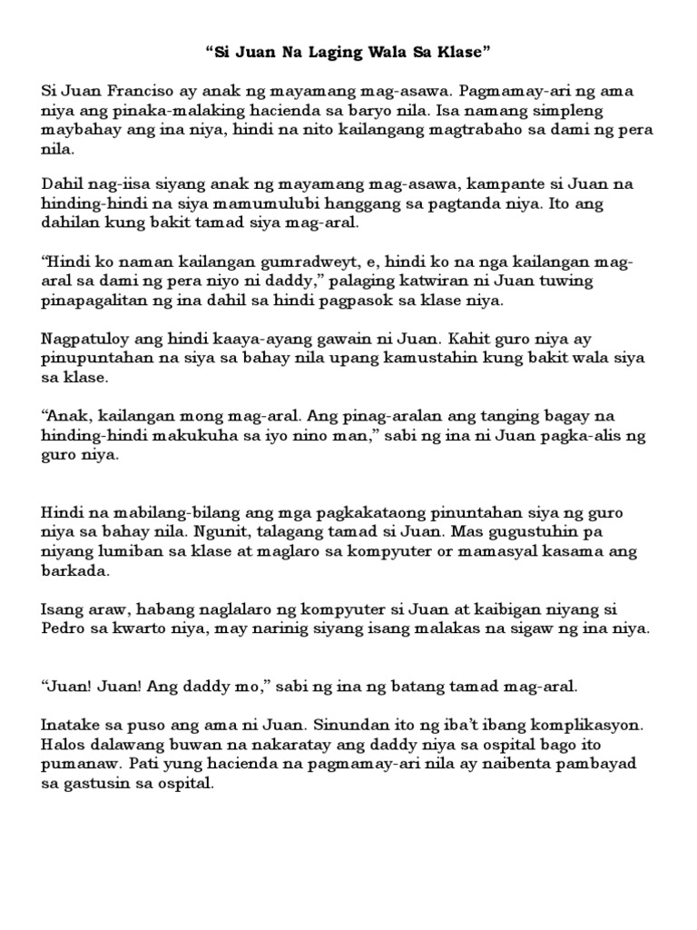 Hindi yung dun sa mali. Tayo naman nang binigyan tayo ng advice na yan ating tinigil yung mga newly allocated. Habang nakatayo sa harap ng mayayaman matataas ang pinag-aralan at maiimpluwensiyang lalaking ito walang-takot ngunit magalang na inihayag nina Pedro at Juan.