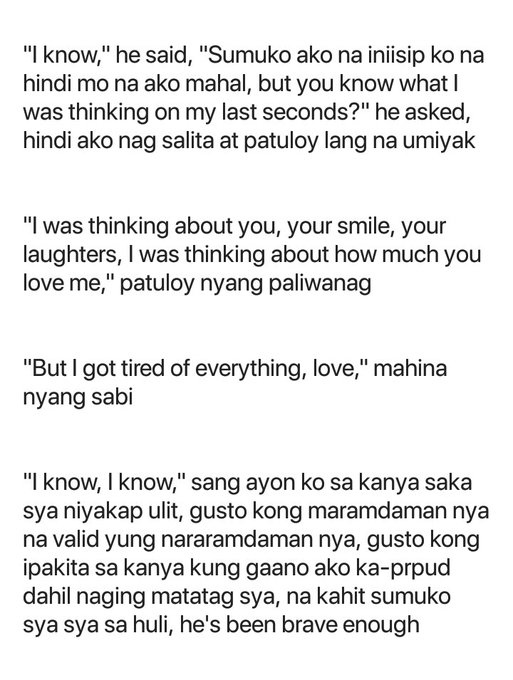 Ngunit mas pinili ko nalang lumayo dahil alam kong ito nalang ang mas makakabuti para saakin hindi para sa iyo. Labag sa diyos ang pagpatay pero kung dedepensahan mo ang iyong sarili hindi naman na siguro na masama yon kailangan mong protektahan yung nakakarami pero yung word ng pagpatay kasalanan yon pero yung word na pagdepensa hindi yon kung isasaalang-alang mo yung nakakarami walang masama din alam ng diyos yon Moral agency R3 - Q49 Q. Hindi ka para pilitin ang puso mo para mahalin syadahil kung mahal mo talaga sya mararamdaman at mararamdaman mo yunHindi lng sarili mo ang niloko mo kundi ang taong mahal ka nga hindi mo naman mahalMagpakatotoo ka lang sa sarili momahalin mo yung taong mahal mo hanggat pwedehanggat wala kang natatapakan at nasasaktanPero hayaan.